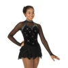 Classic velvet dresses with long mesh sleeves, a square neckline, matching georgette skirt edged in silver and sparkling crystal accents. Also available in watermelon and Royal Blue, Sizes: Youth 6-8, 8-10, 10-12, 12-14, Adult Small