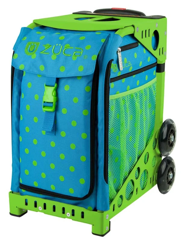 If those happy dots over the U in our logo (aka the “umlaut”) could design a bag of their own, this probably would be it. Lots of vibrant green spots on a bright blue background. Can you say “Ooooooooh”?